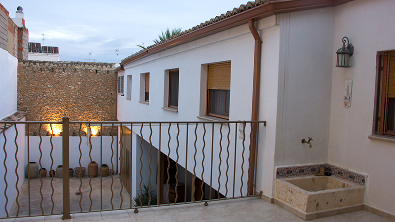 Esta casa se crea dentro de un solar al límite. El acceso es difícil, la fachada a la calle mínima, parcela de forma irregular y con estrechamientos. La casa entre medianeras se retuerce para buscar mediante lucernarios y dobles alturas que el sol del sur entre a las estancias principales. Aunque parecía que no, se consigue una planta baja diáfana, un patio, central y trasero y dos plantas de vivienda unifamiliar.